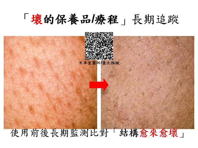 根據科學邏輯,要確定保養品或治療的安全,應該在使用前、使用後都做紀錄;而且必須長期監測,反覆比對。這就是呼籲建立「使用保養品∕療程時,請隨時監測肌膚反應」的正確心態與為什麼護膚品「長期使用有危險」?=談「實驗室資料」與「長期追蹤PMS資料」的核心價值。