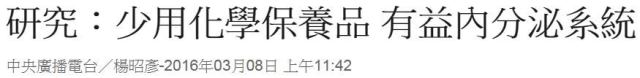 研究證實:少接觸保養品化學成分,減少內分泌系統傷害(中央廣播電台/楊昭彥2016年03月08日上午11:42)