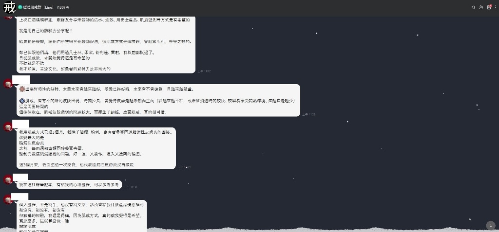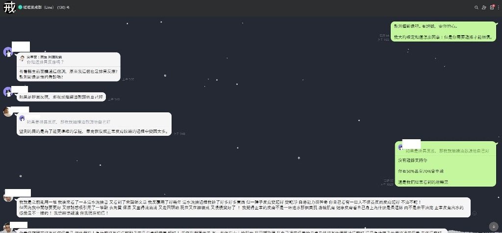 都已經跟他們講,他們用過的凡士林、柔潔、舒利達、雷射,我以前都試過了。自從肌戒後,才開始覺得這是有希望的。