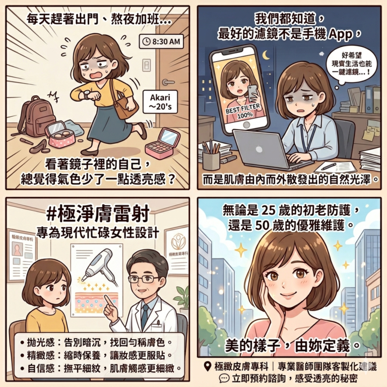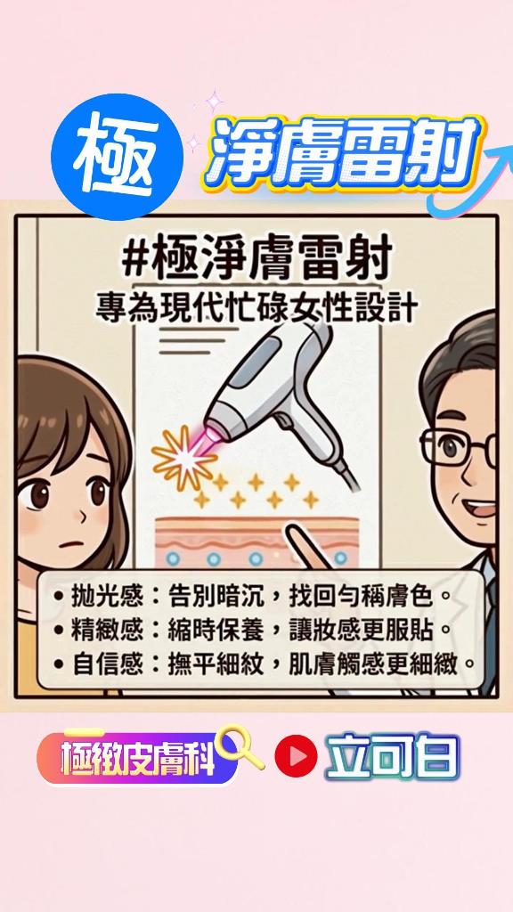 專為現代忙碌女性設計的 #極淨膚雷射 ;多效合一保養,幫你快速找回: